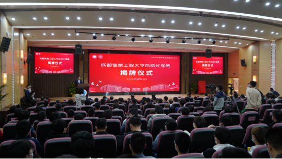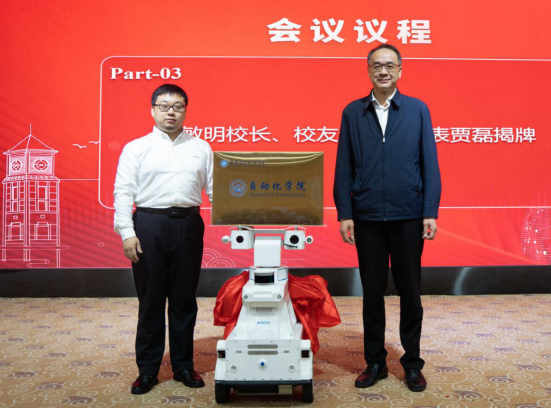 上午,揭牌仪式在国际会议厅举行,于世祥主持会议。何建新介绍了学院更名情况;舒红平宣读了学校关于学院更名的决定;余敏明和自动化学院校友会会长贾磊为自动化学院揭牌;参会企业及校友代表给学院进行了捐赠;全体参会人员观看了校友祝福视频。