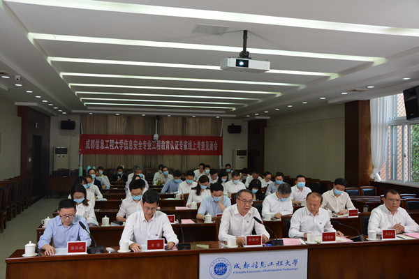 学校高度重视工程认证工作,严格依据相关工作安排及纪律要求,认真、细致地布置了各项准备工作,以及在线考查期间的各项任务。4月28日上午,在线考查见面会在学校行政楼第一会议室举行。中国工程教育专业认证协会专家组成员,学校校长余敏明、副校长何建新,学校党委办公室、校长办公室、党委教师工作部(人事处)、党委学生工作部(学生工作处)、教务处、招生就业处、计财处、后勤基建处(后勤服务公司)、校团委、信息中心、图书馆、工程实践中心、光电工程学院、马克思主义学院、外国语学院、应用数学学院相关负责人以及网络空间安全学院班子成员及教师代表参加了会议。