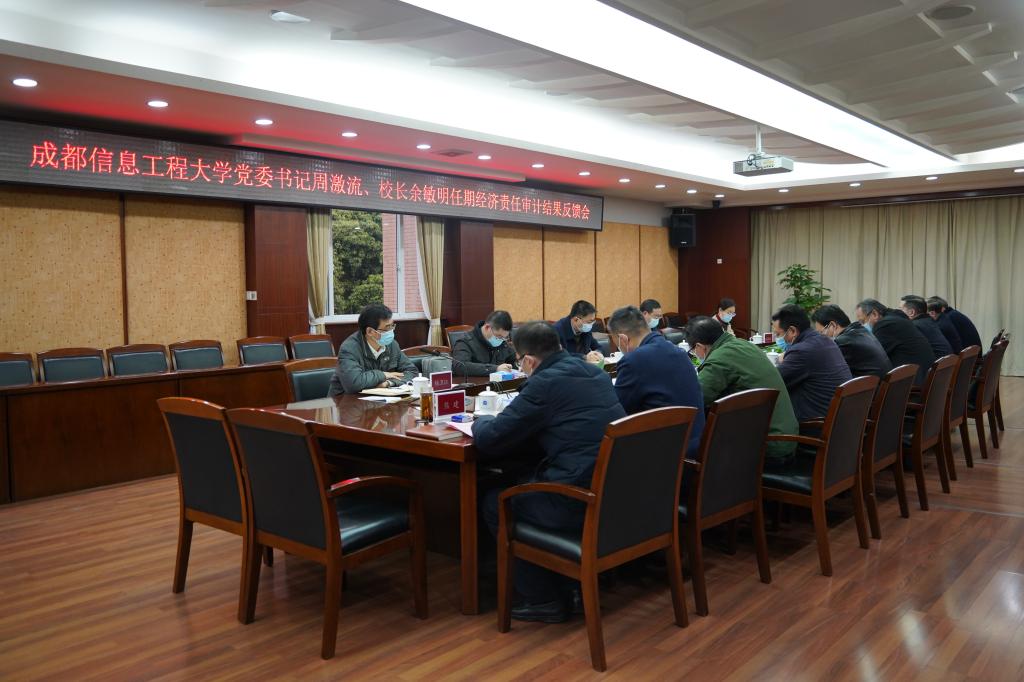 【本网讯】2月22日,学校在航空港校区第七会议室召开经济责任审计结果反馈会。审计组组长、审计厅党组成员、副厅长李文双,审计组副组长、教科文卫审计处处长邓建华,教科文卫审计处副处长吴浪逆,省委组织部干部监督处副处长王磊,四川省教育厅教育督导与审计处一级调研员陆卫江出席会议,全体校领导,相关部门主要负责人参加了会议。邓建华主持会议。