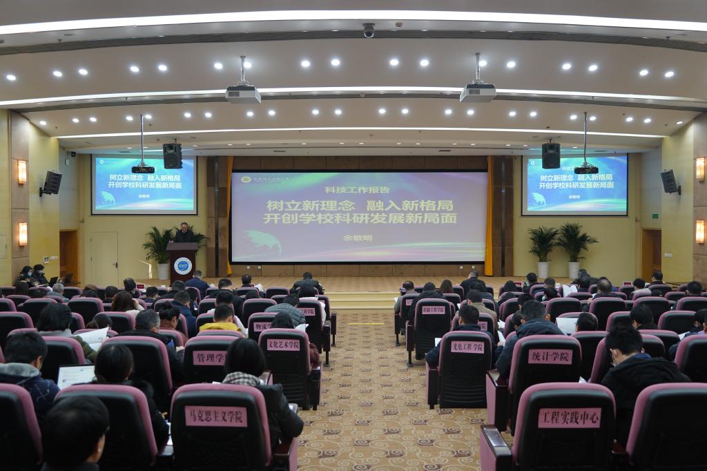 【本网讯】12月24日上午,学校在国际会议厅召开科技创新工作会议。会议系统总结了“十三五”期间学校科研工作成绩,部署“十四五”科技创新工作和科技创新体系建设,并研究讨论新制定或修订的科研管理系列文件。全体校领导,校学术委员会成员,各学院负责人、分管科研负责人、科研秘书、市厅级以上科研平台负责人、科研骨干代表及学校有关部门负责人参加了会议。副校长何建新主持会议。