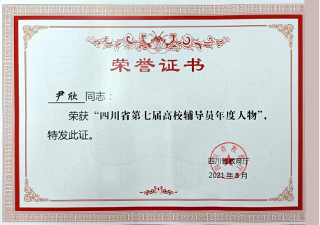 【本网讯】9月7日,全省高校辅导员队伍建设座谈会在成都召开,副省长罗强出席会议并讲话。会上,省委教育工委书记李建勤宣读了《四川省教育厅关于公布第七届全省“高校辅导员年度人物”评选结果的通知》。我校大气科学学院辅导员尹欣获评“高校辅导员年度人物”称号,也是我校连续第二年获此殊荣。