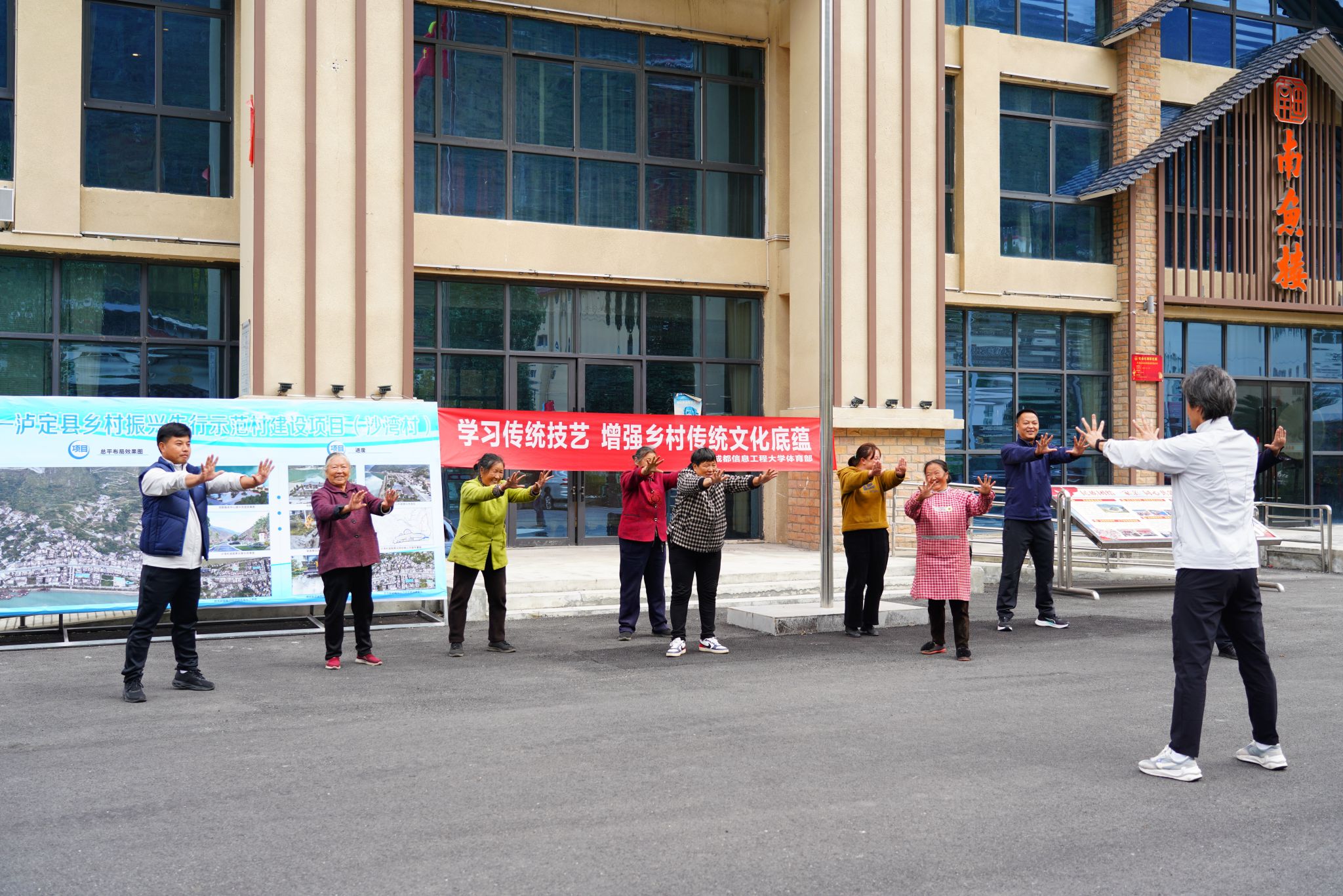 【本网讯】为深入学习贯彻党的最新理论成果,推动党的理论在基层落地生根,充分发挥高校资源优势,同时弘扬传统体育文化,提高村民文化及身体素质,赋能乡村活力发展。11月6日,学校党委宣传部副部长袁华、体育部主任程艺一行赴泸定县沙湾村,开展“文化下乡”活动。本次活动内容包括开展“感党恩、听党话、跟党走”专题宣讲及“传统技艺乡间行”项目体验。