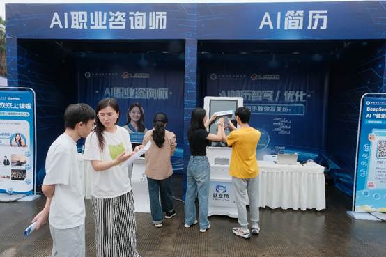 活动现场,学校设置了咨询服务台、AI职业咨询、AI简历、AI面试、大学生征兵咨询等功能区,不仅为同学们求职过程中的痛点难点进行答疑解惑,还为同学们提供简历修改、入伍政策分析、面试技巧、生涯规划等“一对一”个性化咨询和指导,现场排队体验的同学络绎不绝。