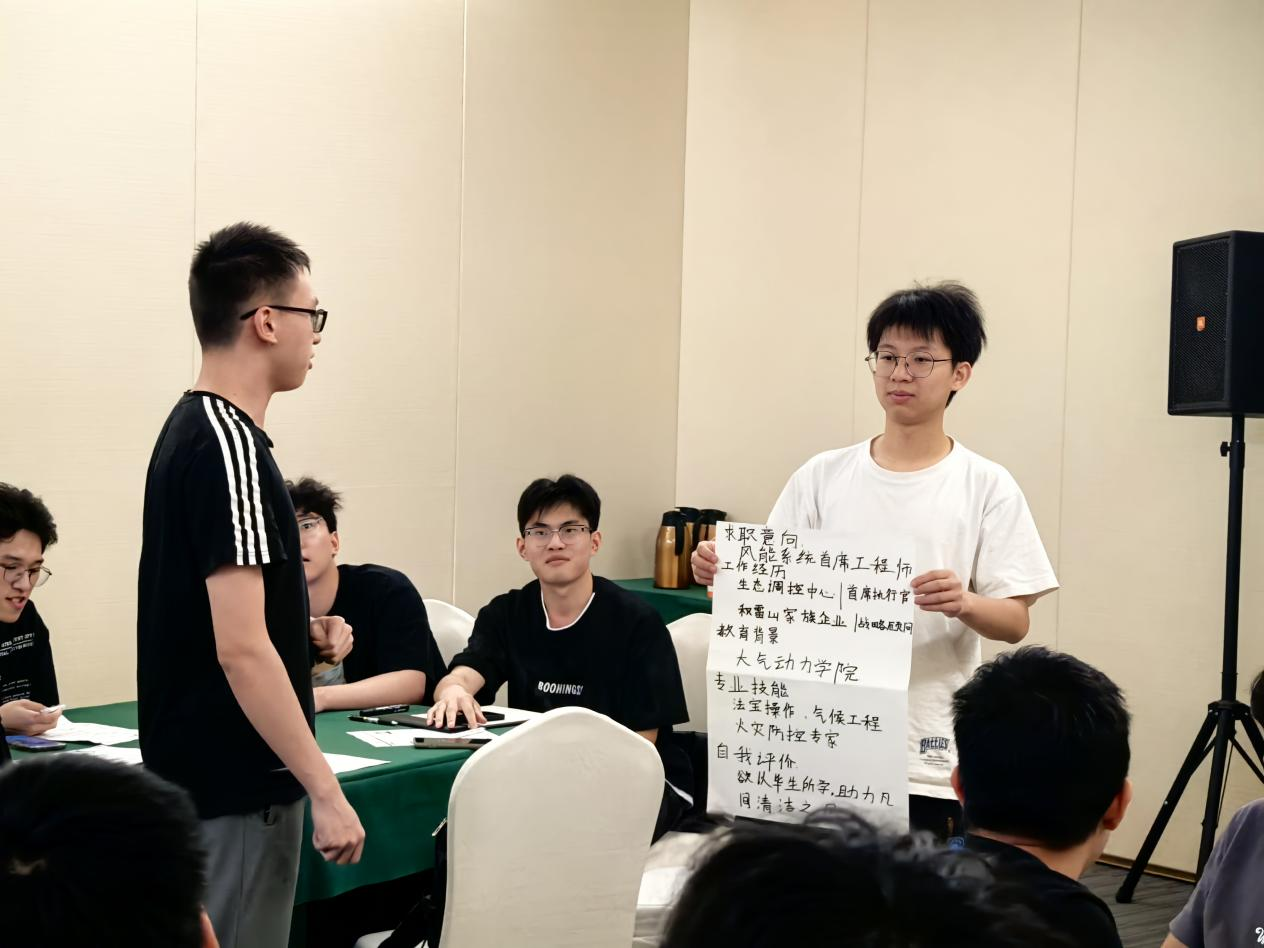 在“就业能力提升微课堂”中,李奕和任航围绕“身份牌元宇宙”这一主题,通过互动游戏与指导环节,引导学生理解简历撰写与职业定位;在“身份牌盲盒”环节,学生分组抽取《西游记》人物身份牌,并为其设计简历,学习简历的结构与要素;“镜子中的自己”环节中,老师对学生的简历进行一对一指导;“职位拼图”环节则引导学生结合自身专业,了解与之相关的多个就业方向,鼓励他们拓宽视野,思考不同的职业路径。