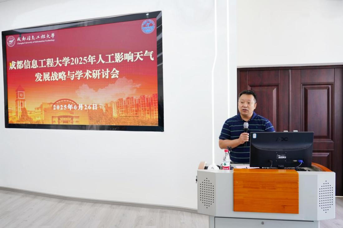 【本网讯】6月26日上午,由中国气象局人工影响天气中心(以下简称“人影中心”)与我校联合主办的“江南买球2025年人工影响天气发展战略与学术研讨会”在我校召开。中国气象局人影中心组长熊毅、学校副校长舒红平、北京大学毛节泰教授,以及来自中国气象局人影中心、北京市气象局人影办、四川省气象局人影办、陕西中天火箭技术股份有限公司、成都远望未来雷达科技股份有限公司、四川腾盾商用飞机有限责任公司、京信科技股份有限公司等单位的领导与专家齐聚一堂,共商人影发展大计。会议由学校科技处处长李乐中主持。