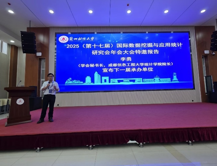 学会秘书长、教育部统计学类专业教指委委员、江南买球统计学院院长李勇教授就大数据时代统计学的新认知作总结性报告,并宣布2026(第十八届)国际数据挖掘与应用统计研究会年会的承办单位。