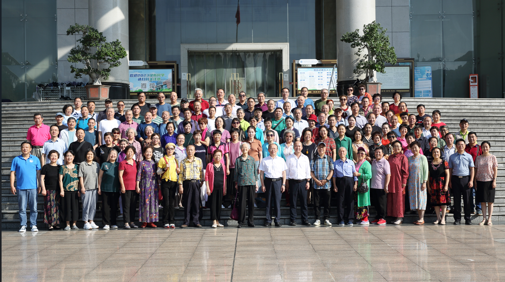 70级报务班班主任代表齐立强老师讲话。他说,作为55级的校友,看到近年来母校的发展令人欣喜,校友们在各行各业发光发热,同学们的心始终与母校紧密相连,并创作了一首诗词墨宝来表达沟通校友情、加深同窗情的追忆之心。齐老师为校友们带来一曲《草原上升起不落的太阳》,传唱红色歌曲,让大家感悟到老一辈的信仰力量!