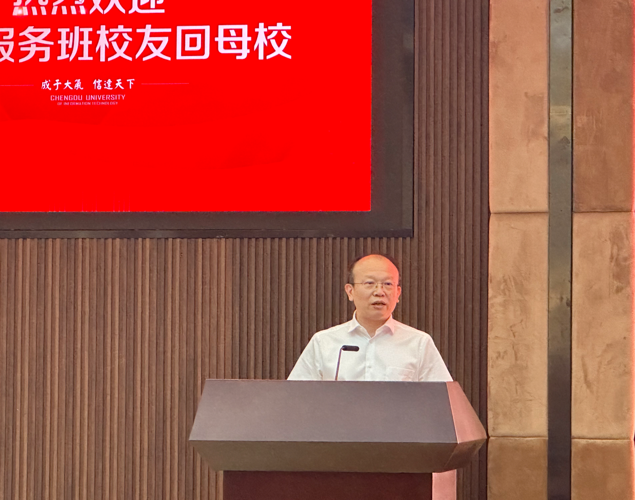 科技处处长李乐中介绍了学校科研情况,着重阐述了学校信息类、大气类和经管类三个专业集群发展情况,并向校友展示了学校近年来取得的科研成果。