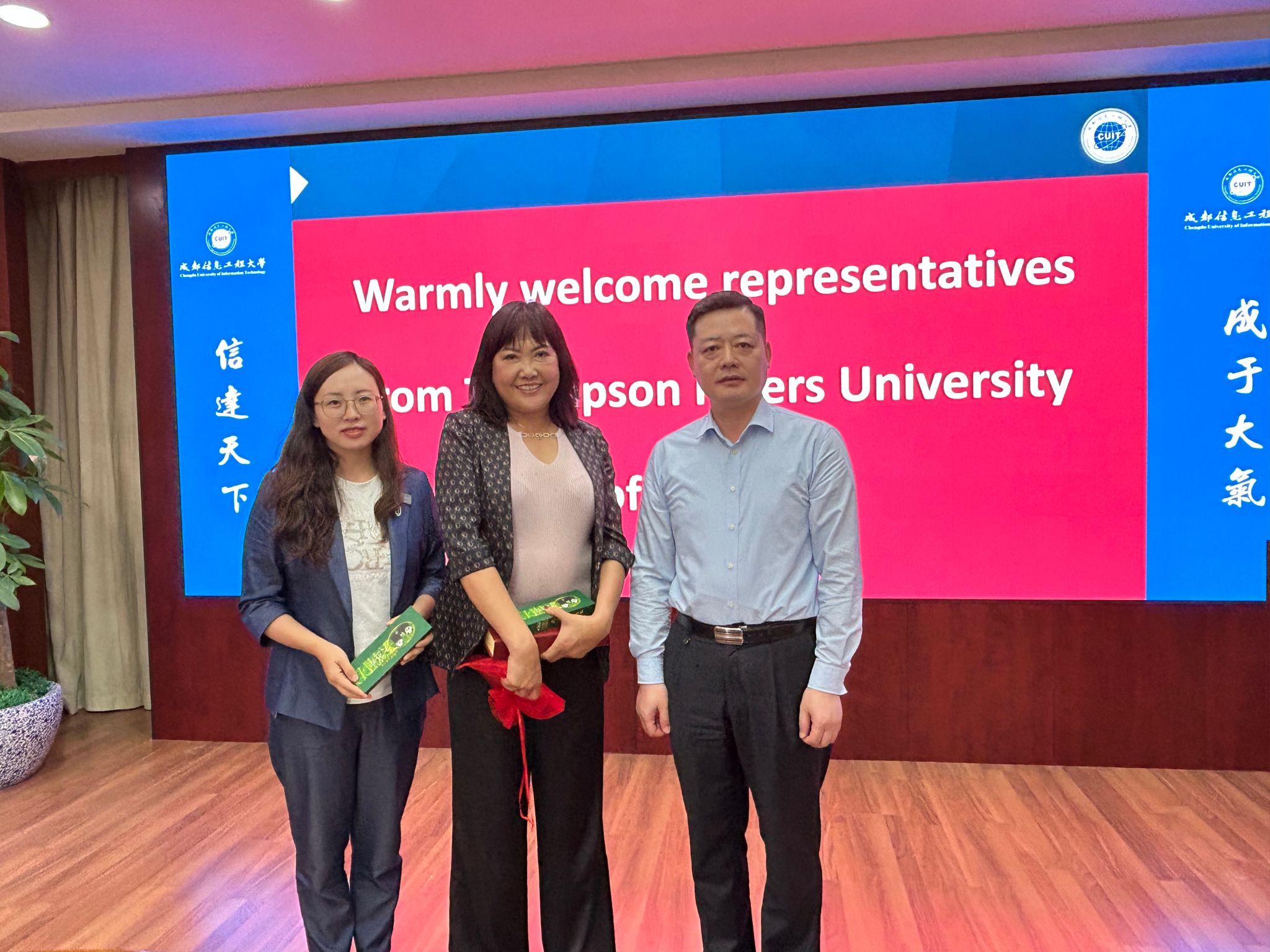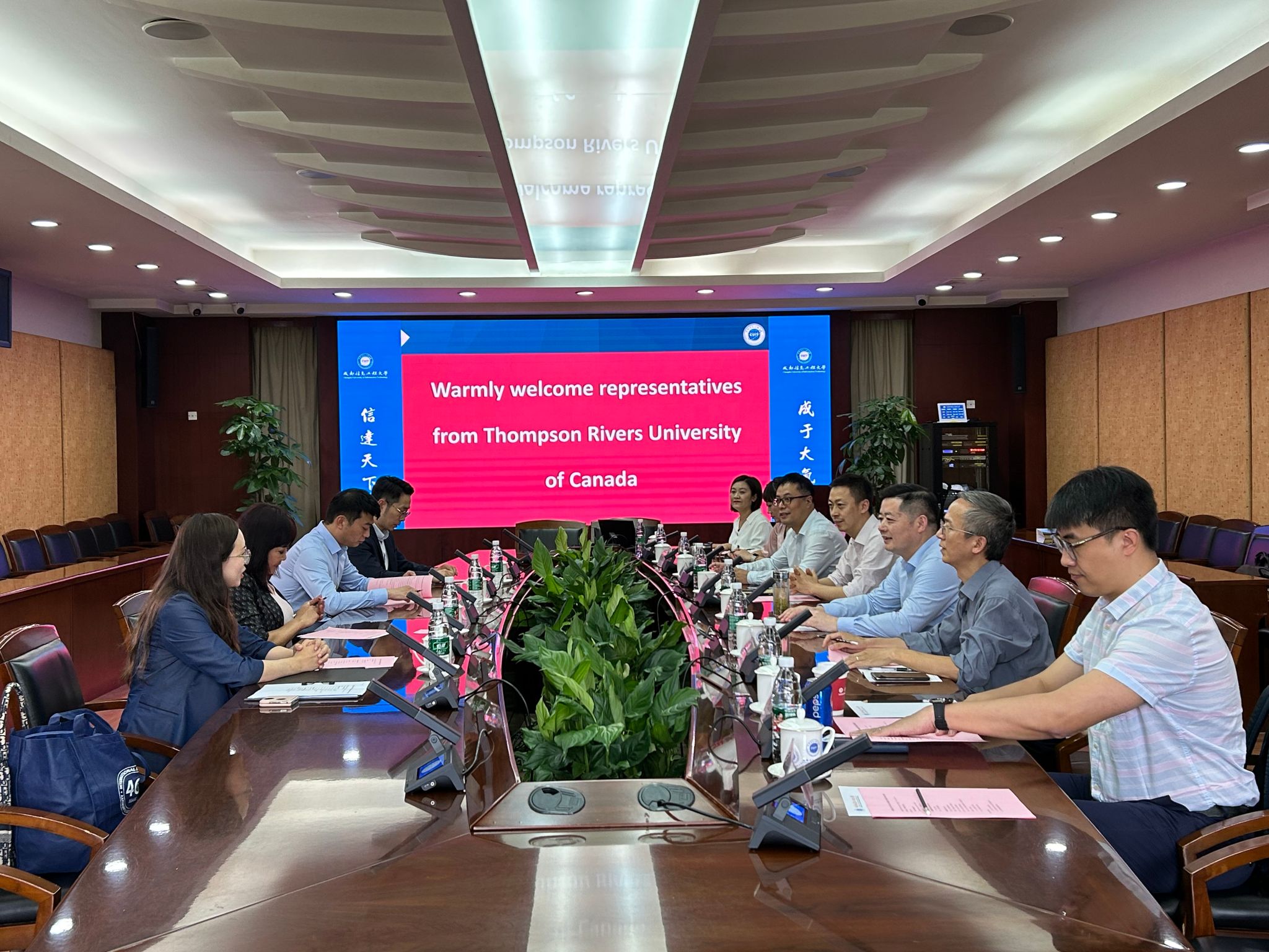 【本网讯】6月19日,加拿大汤姆逊大学(Thompson Rivers University-TRU)副校长Baihua Chadwick、中国区招生代表Emily Lu及负责国际合作事务的相关工作人员一行四人来学校交流访问。省纪委监委驻学校纪检监察组组长、学校党委副书记、纪委书记雷超、国际交流与合作处处长许源平、软件工程学院院长唐聃、副院长魏维、数据科学与工程系主任王亚强、管理学院教师盖秋艳参加交流会,商讨两校合作事宜。会议由许源平主持。