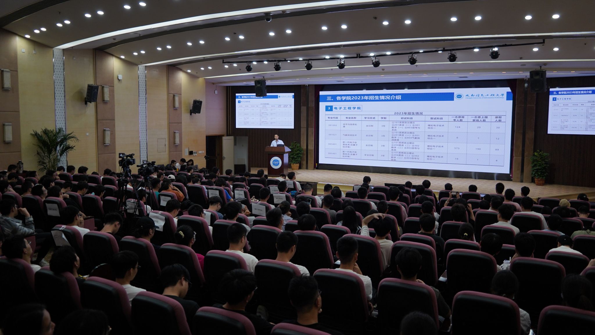 【本网讯】为做好我校2024年研究生招生宣传工作,使同学们更好地了解学校的研究生教育、招生政策与相关要求,5月18日晚,2024年研究生招生首场宣讲会在国际会议厅举办,200余名学生参加了宣讲会,研究生处处长陈权亮作宣讲。龙泉校区学术报告厅同步直播了宣讲会。