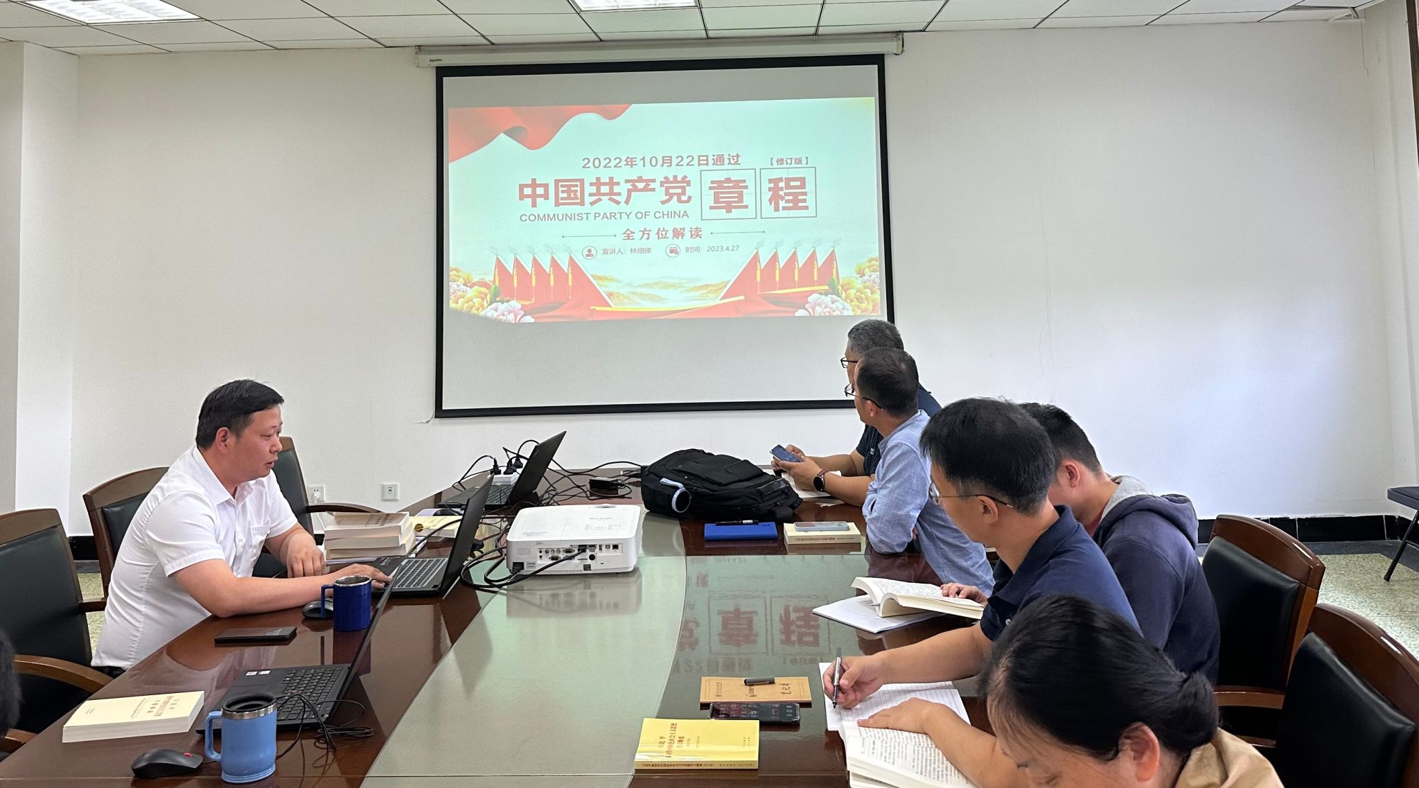林细俤还带领大家学习了《中国共产党章程》,林书记指出党的二十大通过的党章修正案,对党章作出50处修改,其中总纲部分修改37处,条文部分修改13处。此次修改,集中体现了党的十九大以来理论创新、实践创新和制度创新的成果,反映了我们党对党内外形势任务的深度把握和对共产党执政规律认识的进一步深化。