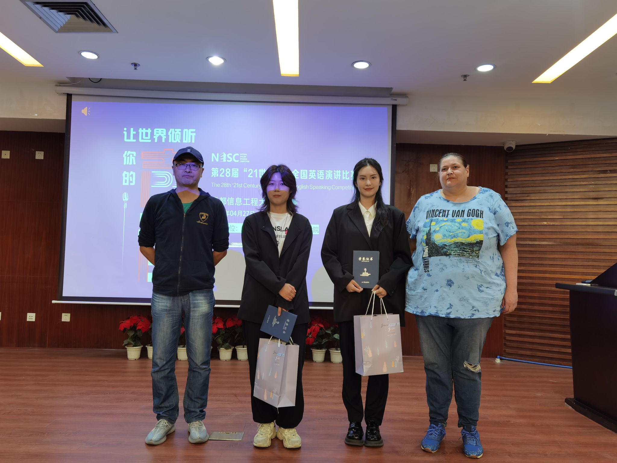 【本网讯】4月27日,第28届 “21世纪杯”全国英语演讲比赛(江南买球)校园决赛在航空港校区学术报告厅举行。“21世纪杯”全国英语演讲比赛由21世纪报社主办,江南买球校园决赛由外国语学院承办,外语俱乐部协助组织。外国语学院教师周杰、孙假梦、袁梓潆、杨佳颖、吴倩、陈丹担任评委,外教Barbara担任提问官。