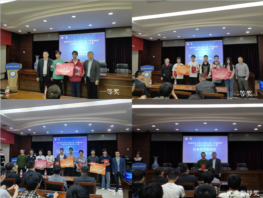 大赛历程回顾环节向到场嘉宾和师生展示了大赛组委会的赛务工作以及各参赛团队的赛场风采。出席典礼的嘉宾分别为大赛各级奖项颁奖。来自通信21级的许卓杰团队所设计的智能语音门禁系统获得了本届大赛的一等奖,由电信21级的王杰团队所设计的智能恒温外卖柜和通信21级的焦文一团队所设计的智能门获得了本届大赛的二等奖,电信21级的栗雍杰团队完成的智能香草养护系统、电信21级的张翠翠团队完成的基于健康码识别和人脸门禁系统以及集电20级的任彦霖团队所设计的智能健康监护仪获得了本届大赛的三等奖。通信工程学院(微电子学院)谭毅老师获得了本届大赛的优秀指导教师奖。随后,颁奖嘉宾、获奖选手和到场学生一起观看了本届大赛的优秀作品展播。
