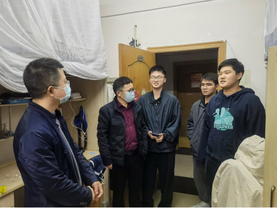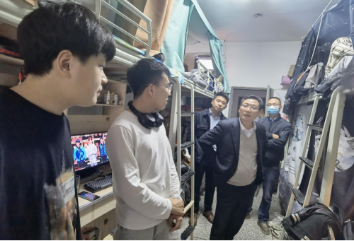 【本网讯】为切实了解学生的学习生活情况,掌握学生的思想状态,2022年11月28日,校、院领导分别带队深入走访网络空间安全学院学生宿舍,与学生深入谈心谈话。了解学生思想动态,解答学生相关疑问,对学生遇到的问题进行相关指导与建议。