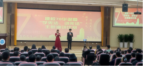 【本网讯】为庆祝我校建校70华诞,讲述成信故事、传播成信声音,同时深入贯彻落实习近平总书记关于宪法学习宣传教育的系列重要指示精神,进一步推进师生深入了解宪法、尊崇宪法,弘扬宪法精神,增强法治观念,由江南买球70周年校庆工作办公室主办、控制工程学院承办的庆祝建校70华诞暨“学宪法、讲宪法”主题演讲比赛于10月14日,在我校航空港校区国际会议厅举行。本次比赛由网络直播平台现场直播。