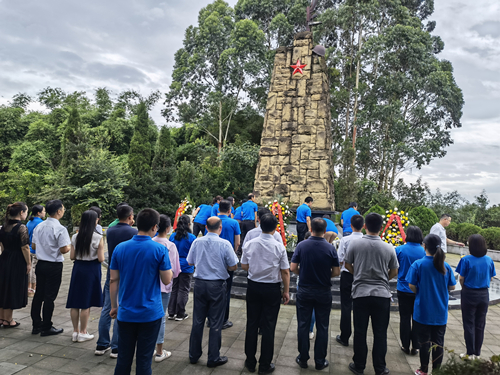 【本网讯】为推进党史学习教育走向深入,7月16日,党委办公室、校长办公室,校团委、校友办公室、区块链产业学院四个党支部,在党委副书记马洪江同志的带领下,赴蒲江县联合开展“学党史、悟思想、办实事、开新局”党史学习教育实践活动,缅怀英烈伟绩,赓续红色血脉。