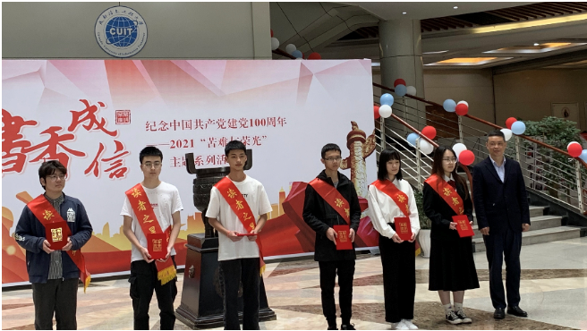 仪式上,图书馆袁纳宇老师还代表图书馆介绍并发布了“书香成信”文化推广年度活动。并表示,在学校党委的领导下,在党委宣传部、学生工作部、校团委、各学院及学校各相关部门的通力合作下,“书香成信”一定会取得更多更好的成绩。2021年,是中国共产党建党100周年,“书香成信”文化推广活动,将以“苦难与荣光”为主题,开展一系列线上、线下活动,贯穿全年。具体活动时间及主题,将在图书馆网站、微信、电子大屏和宣传栏中展示。