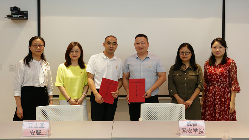 参观结束后,全体同学在卫士通会议室参加了江南买球网络空间安全学院研究生党支部与卫士通安服事业部党支部结对共建签约仪式和交流座谈。签约仪式前,卫士通总经理助理陈澜女士代表公司致欢迎辞并介绍卫士通企业的概况,她表示,企业发展的一个重要途径就是校企联合,期望在党建、技术、育人、招聘等方面与成信大网络空间安全学院进行深入合作,实现校企双赢。随后,林细俤和李雅静也分别做了发言。林细俤与卫士通安服事业部党支部书记叶定松分别代表校企双方签订了党支部结对共建协议书并合影留念。