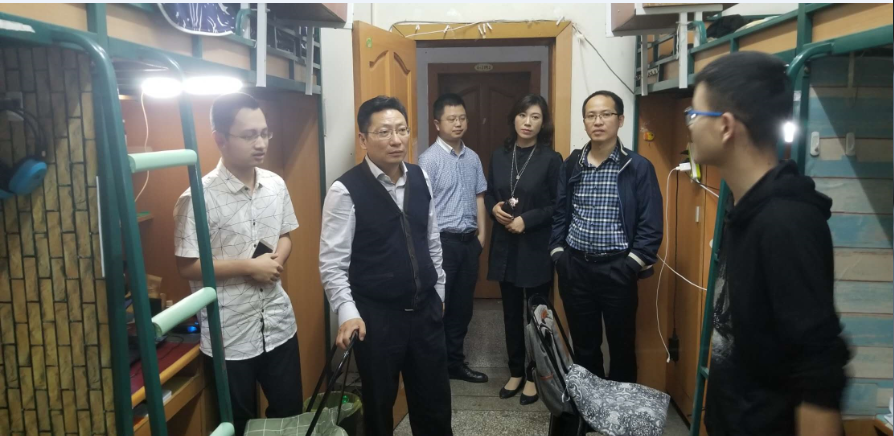 走访检查过程中,马洪江与同学们进行了亲切交流,听取同学们对宿舍和生活服务设施的意见,并询问学习、生活情况,了解学生思想动态,并对寝室文化建设比较好的宿舍提出了表扬。他对寝室周围安全死角进行了彻查,重点检查了寝室周围垃圾站的管理情况,消防安全通道是否畅通、消防设施是否完好,后勤管理人员是否有安全防范意识等,对宿舍区存在的一些问题提出改进措施,并要求相关部门立即布置整改,坚决排除各种安全隐患。