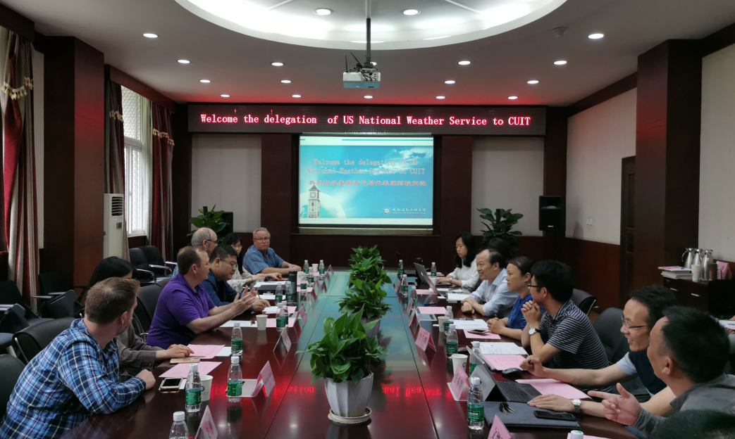 【本网讯】4月28日上午,美国国家气象局首席学习官John Edward Ogren一行4人在中国气象局气象干部学院业务培训部副主任温博和中国气象局气象干部培训学院四川分院副院长岳婷等人的陪同下到我校电子工程学院就天气雷达培训工作进行访问交流。学校副校长何建新,国际交流与合作处、电子工程学院学院负责人及相关老师参加了会议。