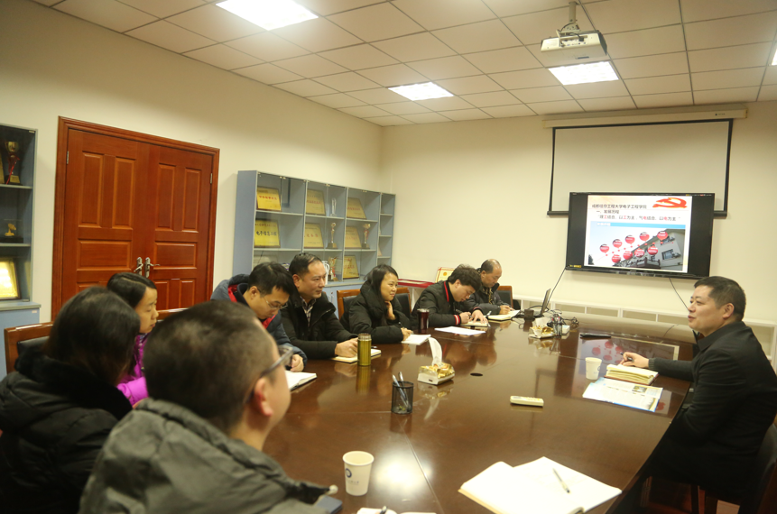 电子工程学院院长杨玲、党总支副书记兼纪检委员杨勇,副院长孙秀斌,电子工程学院党政办、教务办、学工办负责人参加会议。