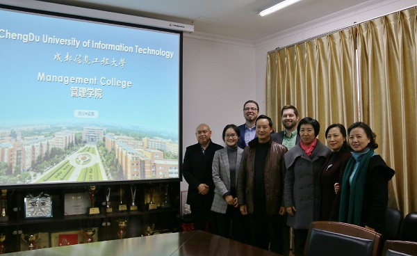 【本网讯】12月4日下午,美国西肯塔基大学中国项目部负责人David Kerr,美国明尼苏达大学 T. Ryan Hall博士,ESLI成都教学中心代表,四川宏图出国留学服务公司总经理宋泰村等一行五人到访我校管理学院,洽谈国际合作交流项目。管理学院党总支书记王子华,副院长李贵卿、孙艳玲,实证研究中心主任龚季兴等参加了交流座谈。