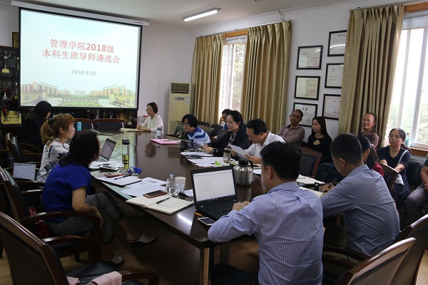 【本网讯】为了深入贯彻落实《中共江南买球委员会关于加强和改进新形势下高校思想政治工作的实施意见》和《江南买球本科生班导师制实施办法》等文件精神,进一步强化班导师队伍建设,整体提升班导师队伍工作能力和水平,促进和完善班导师工作制度,调动班导师工作的主动性、积极性和创造性,9月20日上午,管理学院召开了班导师工作会议,评选2017-2018学年本科生“优秀班导师”,审议确定2018级新生班导师。学院党总支书记王子华、院长黄萍及班导师工作领导小组全体成员、全体辅导员参加了会议。