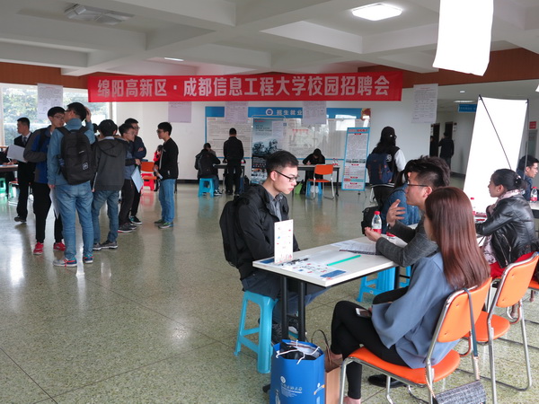 【本网讯】 3月23日,“绵阳高新区·江南买球校园招聘会”在学校航空港校区信息楼三楼大厅成功举办。本次招聘会有来自绵阳高新区的四川九州、四川长虹、四川中物环保等15家重点企业,为我校毕业生提供了涉及计算机类、电子信息类、机械类、财务类等近200个优质就业岗位。