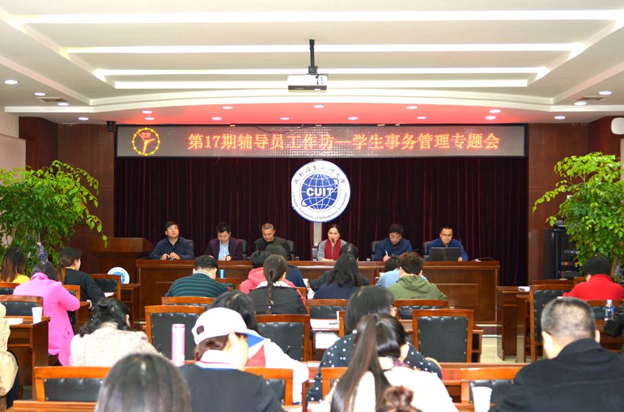 会上,教务处学籍管理科科长吴渊向参会人员宣讲了学籍管理的相关规定,并积极回答了各学院辅导员对学生学籍、学分相关问题的询问;学生工作处学生管理科于尧老师向与会人员宣讲了学生管理相关规定,并对学生违纪处理办法里的具体条例做了详细的解读;国际交流与合作处丁倩老师就学生国际交流项目活动相关规定做了一一介绍;孙毅就学生户籍、学生安全、大学生应征入伍等相关问题做了详细的介绍;闵卫东通报了近期心理健康与奖助学工作的相关事宜;陈智勇通报了近期学生教育管理工作的相关事宜。 戴丽红表示,辅导员要以十九大报告精神为指引,学习习近平总书记在高校思政工作会议上的讲话,落实立德树人根本任务。学习教育部43号令,准确把握《普通高等学校辅导员队伍建设规定》的主要内容,把《规定》作为提高自身专业水平和职业能力的行为准则,明确定位、提高认识、理清工作职责,推动和促进学生思想政治工作再上新台阶。具体工作要落小落实落细,做好学生日常考勤,抓好周末点到,抓好新生晚自习工作,做好特殊学生备案管理;召开主题班会,做好校外走读清理,校园贷清理等。下一步学生管理工作将进一步加强学风建设、文化建设、队伍建设、特殊学生的教育与管理,开展好辅导员技能大赛,做好学生工作创新论坛