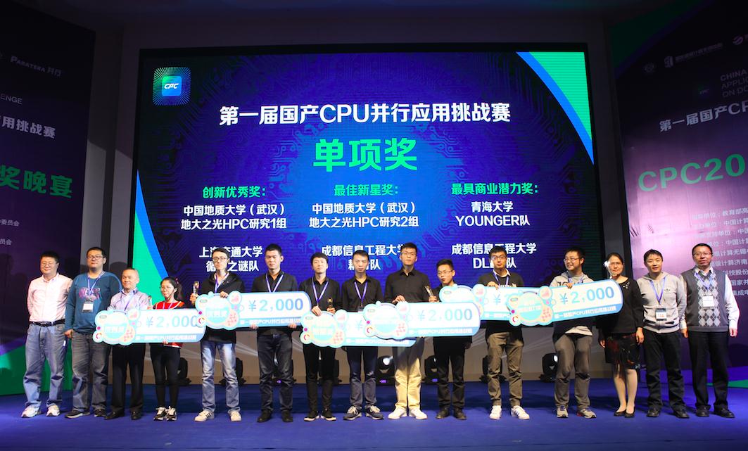 【本网讯】10月11日,第一届国产CPU并行应用挑战赛(简称CPC2017)决赛在国家超级计算(无锡)中心举行,学校计算机学院两支队伍闯入决赛,与清华大学、解放军信息工程大学、中国科技大学、上海交通大学、酒泉卫星发射中心等单位的16支代表队同台竞技。最终,经过现场作品提交和答辩环节,我院“DLLT队”斩获最具商业潜力奖,“耦合队”获得最佳新星奖。