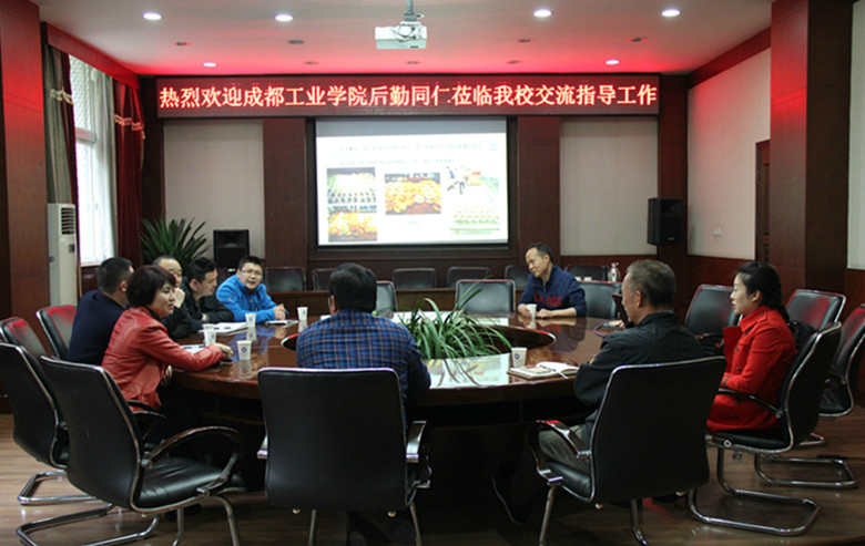 【本网讯】4月1日,成都工业学院后勤服务集团副总经理闫泓一行5人到我校交流考察饮食服务相关工作。我校后勤管理处处长袁世斌及相关工作人员参加会议。
