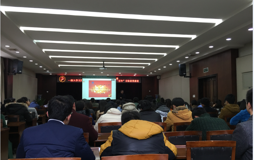 【本网讯】12月13日下午资源环境学院全体教职工党员参加了由胡光辉老师主讲的题为“深入学习党章党规,不忘初心,为实现‘两个一百年’目标奋勇前进”的“两学一做”学习教育党课。