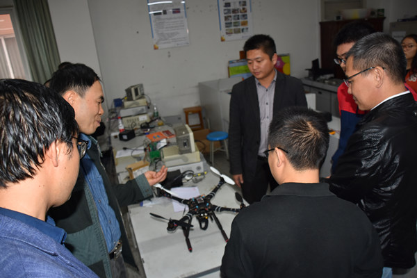 易平与杨明欣分别向客人们介绍了学校创新创业教育改革与电子设计大赛的组织与开展情况。易平特别就客人关注的学校三级创新创业实践平台建设情况及联合社会资源共建大学生创新创业俱乐部情况进行了介绍、说明。杨明欣与客人交流了近年来“大学生电子设计大赛”“蓝桥杯”等大赛实施的心得与体会。