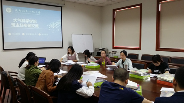 【本网讯】10月8日下午,为认真推进学院班主任制度的施行,就范广洲院长在班主任交流大会上对班主任制度施行提出中肯建议之后,我院在气象楼310会议室再次召开专题会议。此次会议由学院党总支副书记缪燕平主持,对新任班主任进行专题培训。学院全体辅导员,新生班主任参加了此次培训会。