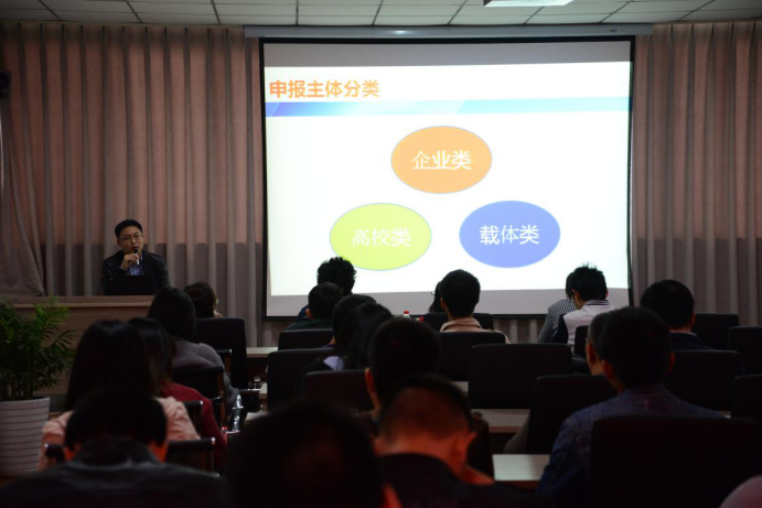 本次宣讲会分为三个部分,分别为“成都新十条”解读、2017年成都市第一批科技项目申报指南解读以及高效知识产权运营。成都生产力促进中心的工作人员黄慧敏从构建促进科技成果转移转化体制机制、搭建成果转移转化平台载体、鼓励科技人员创新创业、加强创新创业金融扶持、促进创新资源开放共享、推动高校院所内部配套改革等方面对“成都新十条”做了详细说明。随后李勇辉就大家关心的科技项目申报、补贴额度等问题进行了讲解。宣讲会还邀请到四川九鼎智远知识产权运营有限公司总经理韩雪普及了什么是专利,专利的类型,专利的作用,专利认识常见误区等知识。