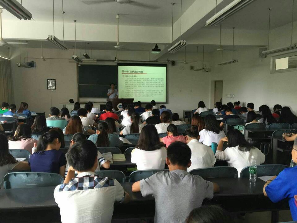 【本网讯】5月20日下午,政治学院时政教育教研室在龙泉2308教室举行了教学观摩课活动。观摩课由政治学院付立杰老师主讲,他讲授的主题是“国际形势与中国外交”。观摩课由教研室主任郑莉主持,政治学院部分教师聆听了观摩课。