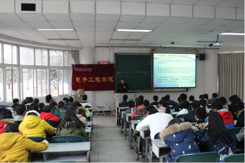 讲座一开始,张书记就以幽默风趣的讲话,带动了全场气氛,吸引了在座同学的注意力,让大家都精神抖擞。他指出,大学生就应该充满朝气,充满阳光,多向学长学姐们学习电子方面的知识。今年我校更名大学成功,这是同学们努力的结果,同时也面临更大的挑战,所以同学们更应该加倍努力,严格要求自己,为学校争光。他认为,大学生应该学会自己解决问题,注重能力的培养,这是一个工程师首要具备条件,没有过不去的坎,微笑的面对身边的每一个人。最后还展示了电子工程学院实验班的优秀作品,希望同学们都积极的参与电子竞赛,在电子方面取得更大的成就。