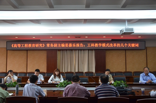 【本网讯】 10月19日,应学校邀请,全国高等工程教育研究知名专家、《高等工程教育研究》常务副主编、华中科技大学博士生导师姜嘉乐教授来校做了“工科教学模式改革的几个关键词”的专题学术报告,并就工程教育改革工作与我校教师进行了交流研讨。教务处、高等教育研究所负责人,电子工程学院、计算机学院、通信工程学院、光电技术学院、管理学院、商学院院长或主管教学副院长(院长助理),相关专业负责人及骨干教师等参加了交流会,会议由我校教务处处长陈敏主持。