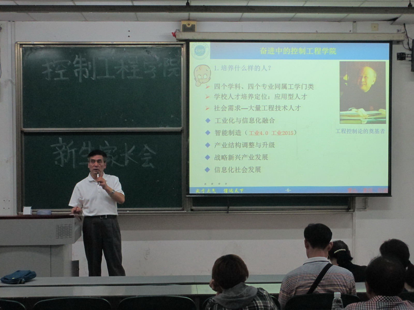 巨辉在会上首先欢迎15级新生家长的到来,并向大家介绍了学校的背景和发展情况以及控制工程学院的专业概况和学生的就业前景。随后,邓丽琴向家长们介绍了学院学生工作和学生管理的相关规章制度。最后,一些家长针对孩子大学生活向学院提出了问题,相关领导和老师做出了详细的解答。
