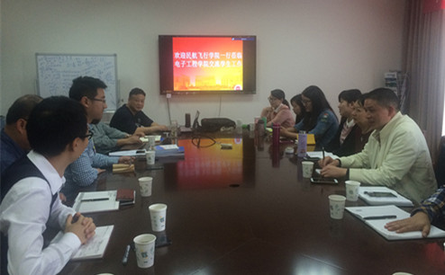 邹强书记首先对航空工程学院的基本情况进行了介绍,提出了一些本次调研工作所关心的问题。彭勇副书记详细介绍了电子工程学院的总体发展情况,张斌兵书记重点介绍了学生工作中的一些优秀工作案例并提出了自己在学生工作中的一些心得思考。张斌兵表示,两院办学各有优势和特色,双方要加强合作,相互学习借鉴,实现共同进步和发展。随后,双方学工队伍就学生工作中所关心的各种问题进行了热烈的交流和讨论。