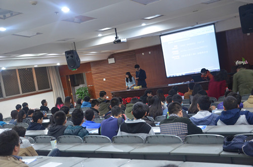 当晚7点比赛正式开始,进入决赛的十组参赛选手依次上台进行比赛作品简介演讲。来自全校各个不同学院的观众同学们,投下了自己宝贵的一票。经过半个小时的激烈比赛,在现场观众的热烈气氛中,比赛前三名出炉并当场进行了颁奖。