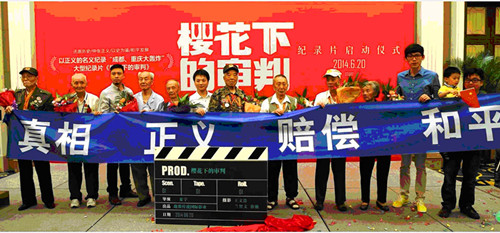 《樱花下的审判》由四川省内某国际影业公司出品、民间资金赞助完成。制片方联合成都律师、重庆律师、日本爱好和平人士、各主流媒体,得到“重庆、成都大轰炸”幸存者及社会各界爱国人士的大力支持,大量的民间友好人士,包括日本著名律师、翻译等,都免费义务参与工作。本片真实记录了日本军国主义战败后索赔案的整个过程,用直观的镜头真实地再现了日本军国主义当年犯下的战争罪行,并记录了中国民间力量对日诉讼的艰难历程。反映了中国人民为了伸张正义、维护世界和平百折不屈的精神,也反映了日本有良知人士的真诚援助和忏悔。本片辗转在成都、乐山、重庆和松潘等地拍摄,以及在日本东京、奈良、京都、大阪等地拍摄。目前已完成艰苦的前期拍摄任务,进入后期制作阶段。