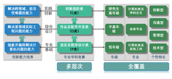 一是学院把学生学科竞赛作为智育的重要抓手,实施“1+3+N”竞赛机制,基于学院一体化教学实训平台,规划程序设计、作品开发和创新进阶三大竞赛类别,致力于推动跨学科、高影响力的“一院一赛”项目,树立学院竞赛品牌,覆盖学校N个专业学生参与。学院依托数据结构与算法实验室、创新开放实验室和并行与高性能计算实验室,分别为不同层次学科竞赛提供培训场地和基础环境。同时,选拔优秀教师组建稳定的竞赛工作小组,负责竞赛组织和指导等工作。近两年,学生参加竞赛的比例逐年增高,获奖数量和档次均有显著提高,在中国国际大学生创新大赛中获国家级奖励1项,省级奖励7项;在“挑战杯”竞赛中获国家级奖励1项,省级奖励5项;在中国高校计算机大赛-团体程序设计天梯赛、中国大学生计算机设计大赛、蓝桥杯全国软件和信息技术专业人才大赛(软件类)、睿抗机器人开发者大赛编程设计CAIP赛道等学科竞赛中,累计获得国家级奖励505人次,省级奖励781人次。二是学院注重学生创新意识培养,打造“触摸科创·点亮视界”品牌活动,通过带领同学们走出校园,走进科技博览会、行业企业、创新工厂等方式近距离感受前沿科技与职业体验,激发同学们对专业学习的兴趣以及对未来职业的追求。三是深入推进学风引领计划,聚焦专业学习、考研科研、出国留学等专题,开展“大手拉小手”学习帮扶工作室、研究生学术沙龙、海外教师留学经验分享会、“榜样说”国奖面对面等特色活动,引导学生乐学、善学、勤学,在院内营造崇尚学术、追求卓越的浓厚氛围。