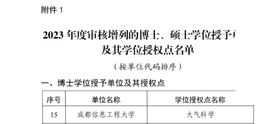 2024年9月,国务院学位办下达通知,我校获批博士学位授予单位,大气科学获批一级学科博士学位授权点,学校在办学层次上取得了重大突破。此次大气科学博士点的成功获批,将为学校培养更多高层次的气象人才提供有力保障。大气科学学院将继续加强学科建设,提升人才培养质量,为我国气象事业的发展做出更大贡献。