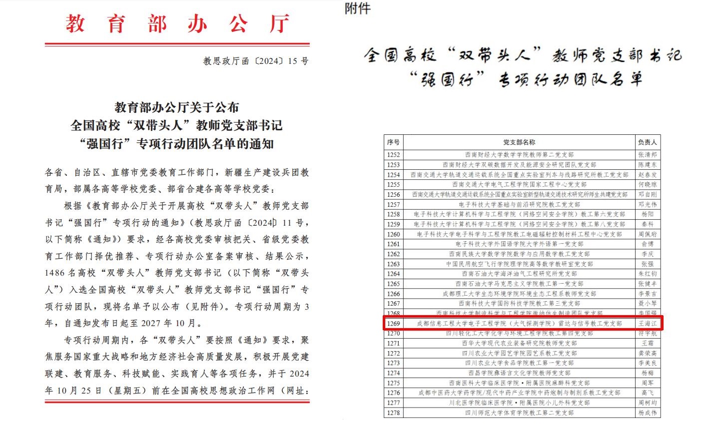 近年来学院党员教师致力于攻坚克难,舰载气象雷达终端软件应用于航母“辽宁舰”、大型驱逐舰;卫星反演成果应用于风云三号气象卫星系统;天气雷达测试与故障检测系统在28个省级气象装备中心推广应用。学院党委积极搭建平台拓展科研资源,与四川省科技厅、天府新区气象局、济南市气象局、正扬博创等单位开展支部共建,不断推进党建与科研业务融合。2024年,学院获批国家自然基金青年项目3项,l联合基金一项,获批多项省部级重点研发项目,学院科研经费再创新高。在第二届全国气象雷达应用大赛、第六届全国高等学校青年教师教学竞赛、第八届全国高等学校电子信息类专业青年教师授课竞赛中,学院多名党员教师获得国家级和省级奖项。党员教师申报的2025年度高校思想政治工作质量提升综合改革与精品建设项目《气象科普文化融入大中小思政一体化建设》,获得省级立项,并获推教育部参评。
