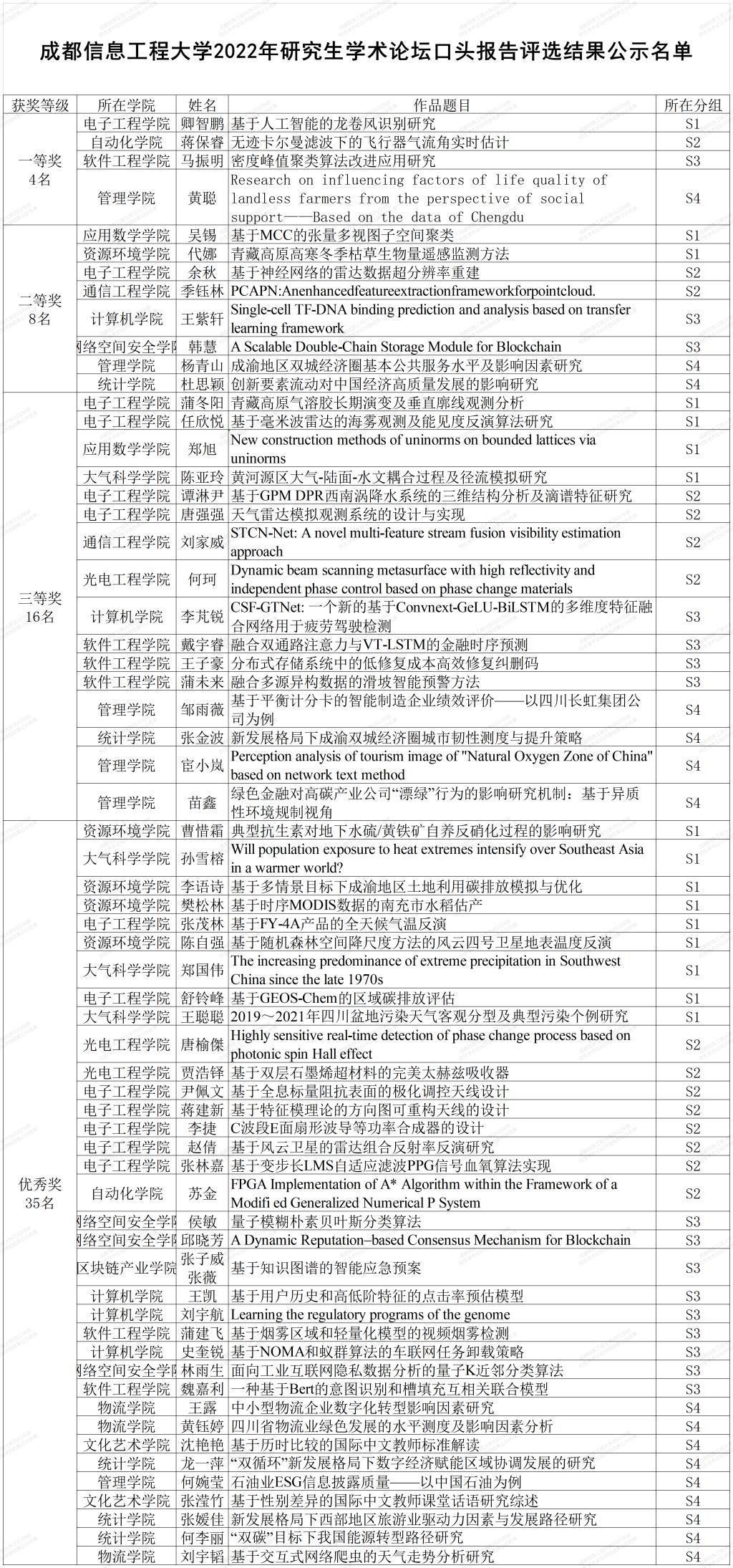 【本网讯】2022年11月10日“江南买球2022年第五届研究生学术论坛”成功举办。本次论坛经组委会和各学院积极组织前期共收到研究生参赛作品230份,其中包含口头交流报告64个,墙报166件。根据《关于举办江南买球2022年研究生学术论坛的通知》安排,本次论坛组织分会场评委对现场63个口头交流报告和165件墙报进行评选,现将评选结果予以公示: