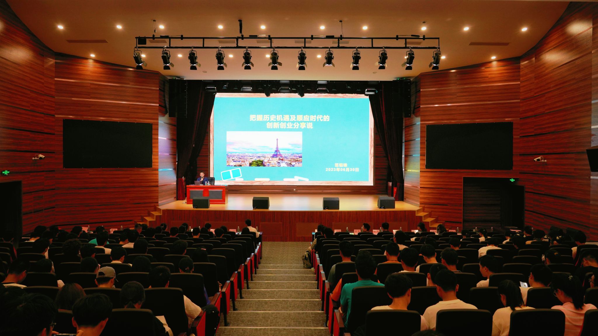 范华昆在分享中将人走向成功的条件总结为以持之以恒的毅力等待机会、在过程中加强身心锻炼、提高自身专业性和不可替代性而获得、与人为善不断创造社会价值,以此鼓励同学们从不同方向持续发力实现自我提升。