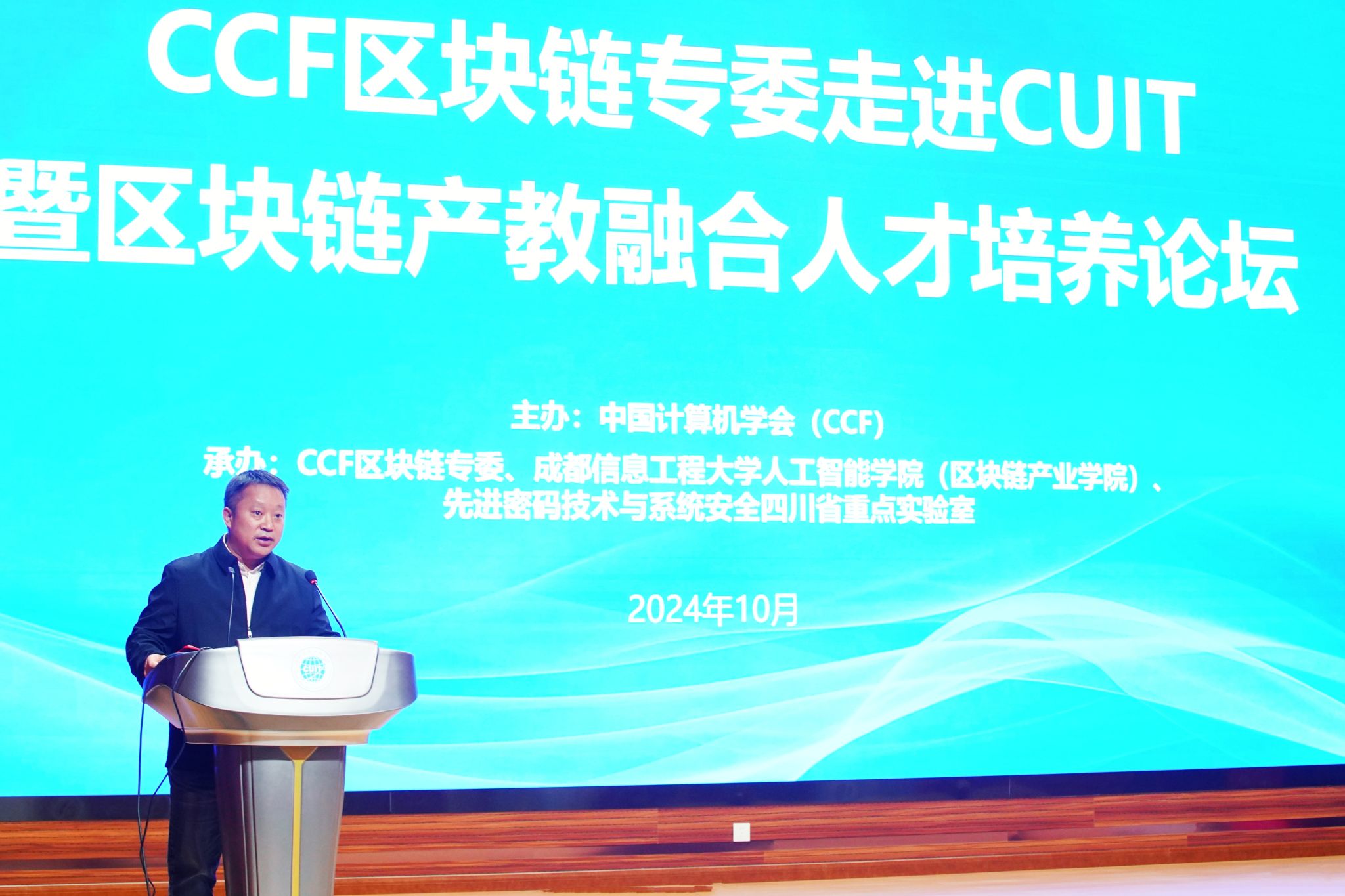 【本网讯】10月26日,由中国计算机学会(CCF)主办,CCF区块链专委、我校人工智能学院(区块链产业学院)、先进密码技术与系统安全四川省重点实验室承办的CCF走进江南买球暨区块链产教融合人才培养论坛在学校航空港校区成信礼堂举行。活动旨在为区块链领域的学者和研究人员提供一个交流平台,提升高校在区块链领域的教学、科研和应用水平,促进人才培养和专业建设。