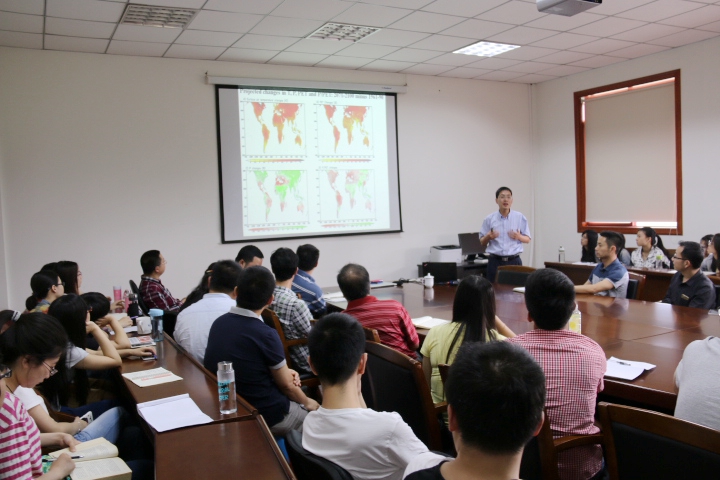 【本网讯】5月26日,美国阿肯色大学(University of Arkansas)的冯松教授应邀来我校作题为Responses of terrestrial aridity a nd drought to global warming的学术讲座。大气科学学院多名老师及研究生聆听了讲座,讲座由大气科学学院院长范广洲主持。