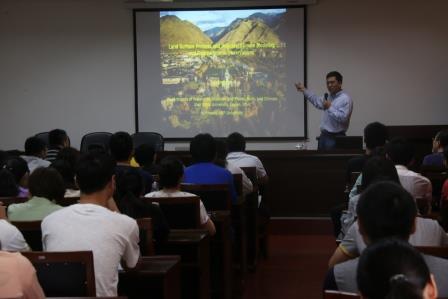 【本网讯】5月6日上午,美国犹他州立大学的金继明应邀至我院作题为“La nd Surface Process a nd Regional ClimateModeling a nd Comparison to Observations”的学术讲座。讲座由大气科学学院院长范广洲主持,大气科学学院多名老师及70余名研究生前来听讲。